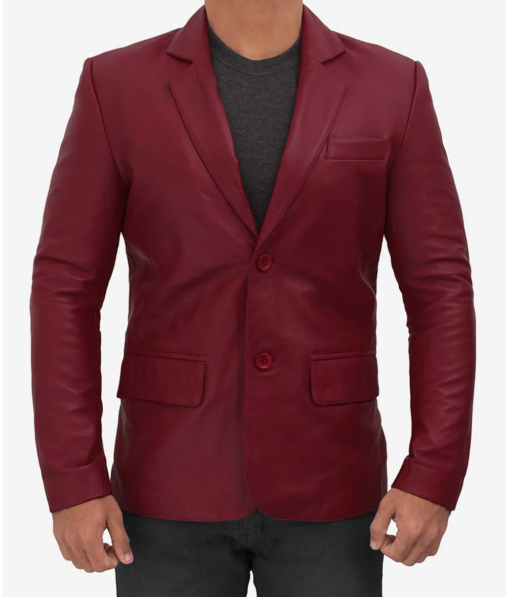 Lapel Maroon Leather Blazer for men