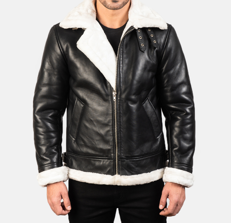 Men’s  B3 Black & White Leather Jacket – Fur-Lined for Ultimate Warmth